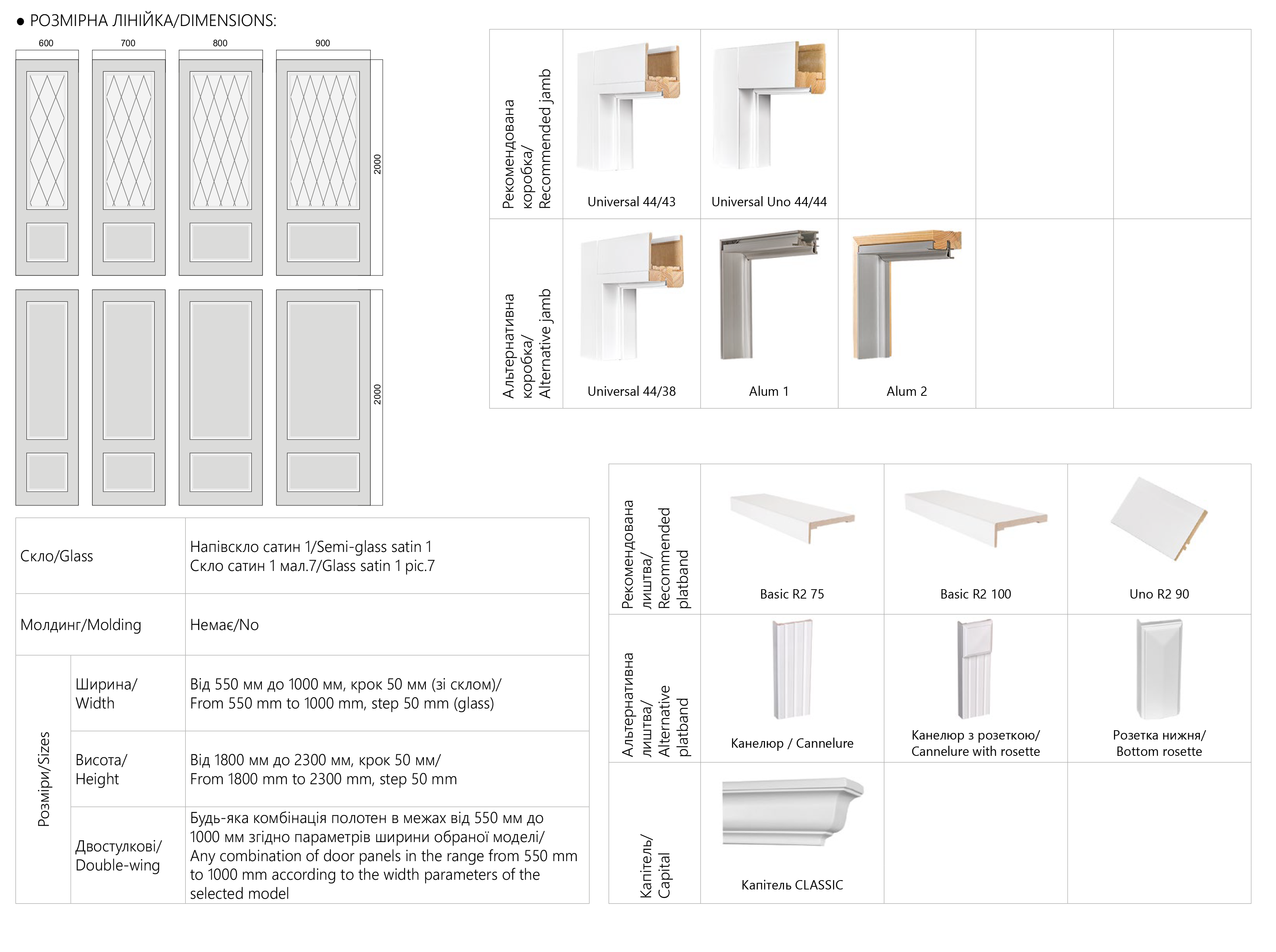 600, 700, 800, 900 mm * 2000 mm