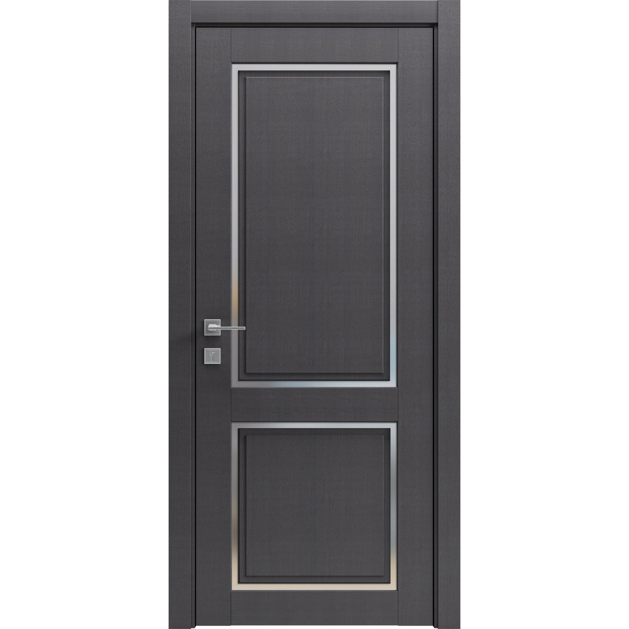 Tocul ușii este din pin masiv, acoperit cu MDF din material ecologic de la producători europeni, pe care se aplică ulterior furnirul ecologic al producătorilor.