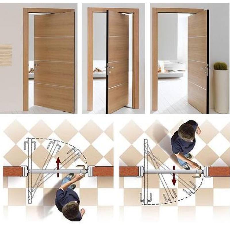| Особенности | Сокращает «мертвую зону» открывания, распределяя ее по обе стороны коробки |