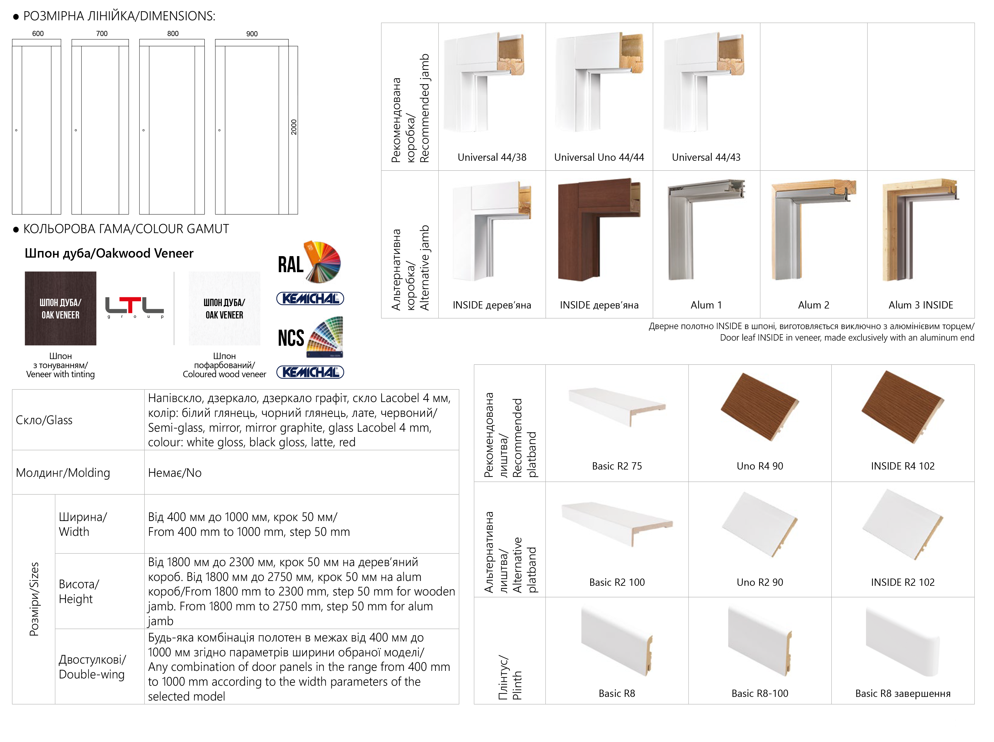 600, 700, 800, 900мм * 2000 мм