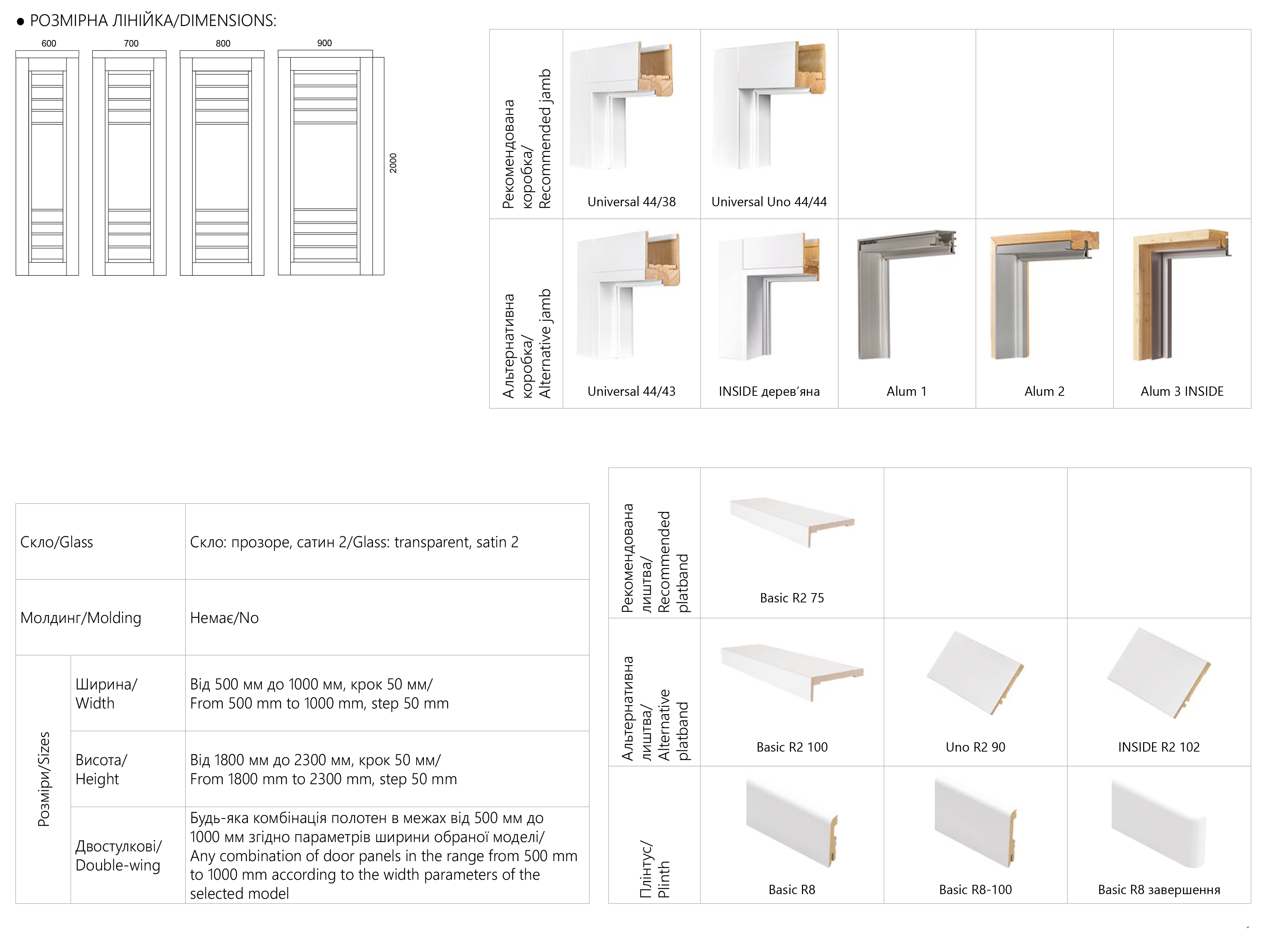 600, 700, 800, 900мм * 2000 мм